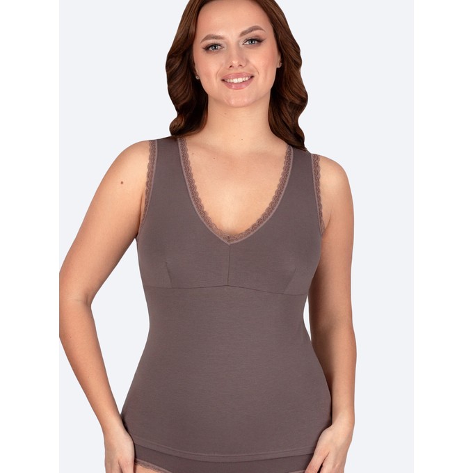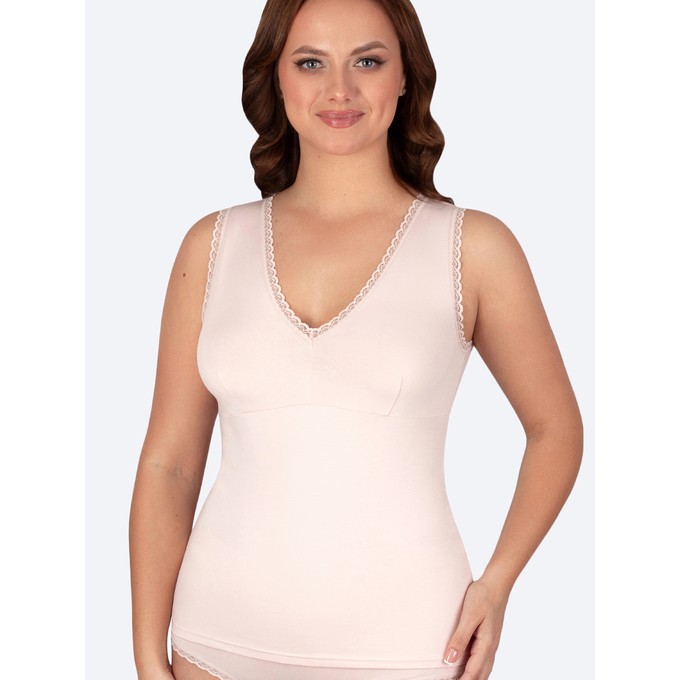 Майка бельевая изготовлена из натурального хлопка с лайкрой. Содержание хлопка даёт гипоаллергенность и позволяет телу дышать, небольшое содержание синтетических нитей придает эластичность, что делает ношение нижнего белья комфортным. Трикотажная майка женская базовая имеет прилегающий силуэт и комфортные широкие бретельки. Подрез передней детали подчеркивает линию груди. Отделка выполнена узким эластичным кружевом. Выверенные конструкции майки на бретелях и натуральный дышащий хлопок обеспечат идеальную посадку и комфорт при носке, что позволяет носить ее как в зимний, так и летний период. Благодаря качественному составу, майка женская хлопок не деформируется и не меняет свой цвет даже при длительном ношении и после стирок. Майка из хлопка с кружевом - идеальный вариант для создания повседневного образа, как база гардероба, а также отлично подойдёт как домашняя одежда, одежда для сна и отдыха, одежда для спорта.