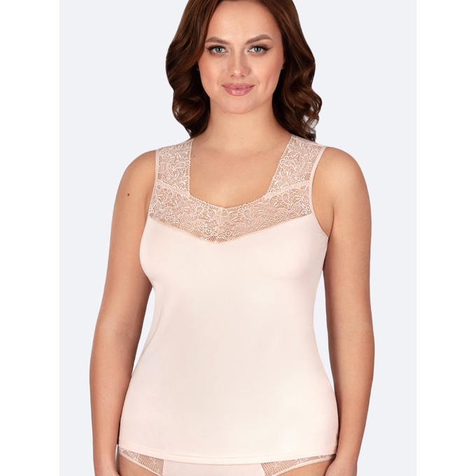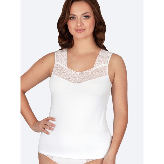 Определить размерЖенская бельевая майка изготовлена из натурального хлопка с лайкрой в сочетании с широким эластичным кружевом. Содержание хлопка даёт гипоаллергенность и позволяет телу дышать, небольшое содержание синтетических нитей придает эластичность, что делает ношение нижнего белья комфортным. Трикотажная майка женская базовая имеет прилегающий силуэт и широкие бретели. Отделка по верхнему срезу выполнена из широкого эластичного кружева. Благодаря качественному составу, майка женская не деформируется и не меняет свой цвет даже при длительном ношении и после стирок. Женская майка с кружевом - идеальный вариант для создания повседневного образа, как база гардероба, а также отлично подойдёт как домашняя одежда, одежда для сна и отдыха.