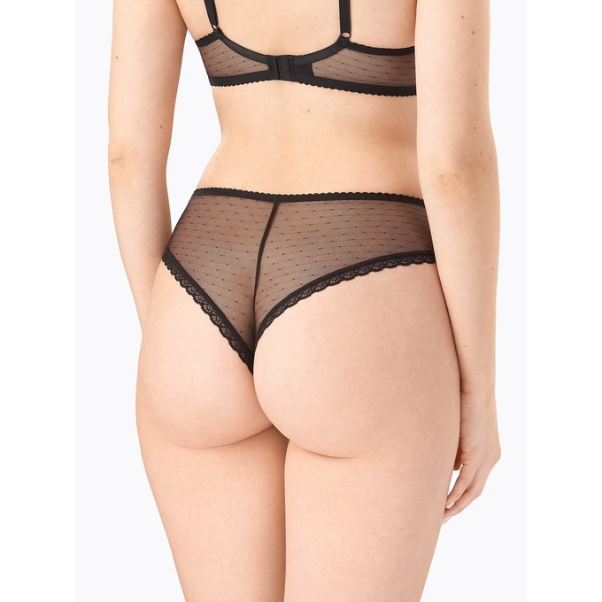 Определить размерБразильяно из эластичной сетки в горошек со средней линией талии. Отделка переда: вышивка. Ластовица из натурального хлопка с лайкрой. Узкое эластичное кружево по линии бедер настрочено незаметным плоским швом. Мягкая эластичная тесьма по линии талии.