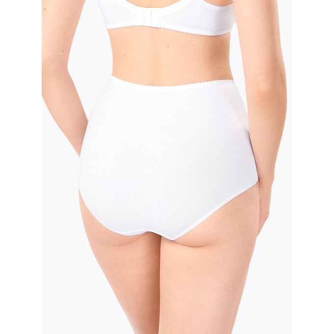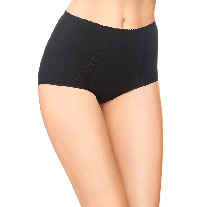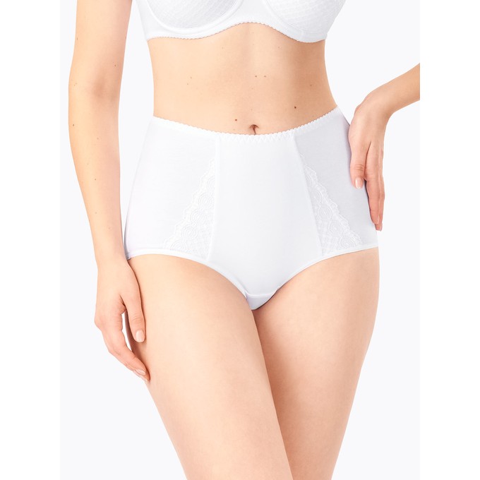 Трусы из натурального хлопка с лайкрой с высокой линией талии. Отделка по передней части из широкого эластичного кружева. Мягкая эластичная тесьма по талии Узкие эластичные ленты по бедрам настрочены незаметным плоским швом.