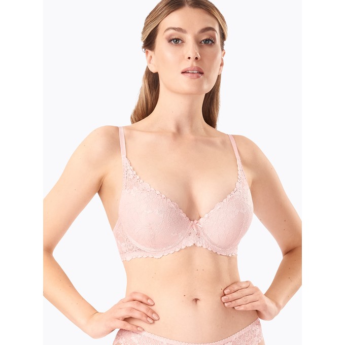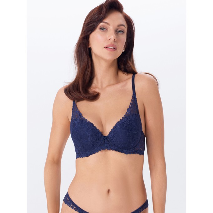 Определить размерБюстгальтер «пуш-ап» из широкого эластичного кружева, на каркасах. Формованные чашки с хлопковой изнанкой и отделкой из кружева, переходящего в бретель. Мягкая изнаночная сторона тесьмы и бретелей. Декор: бантик.