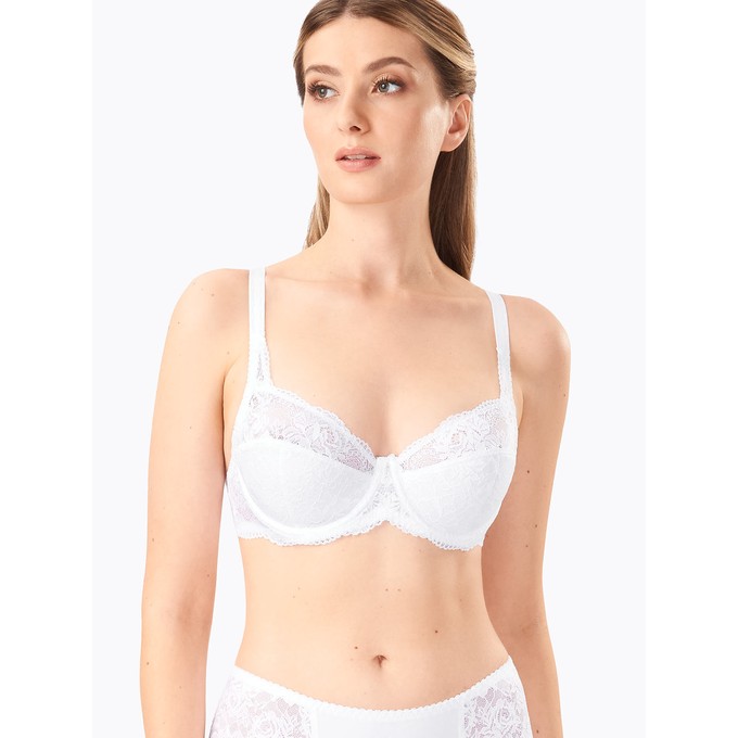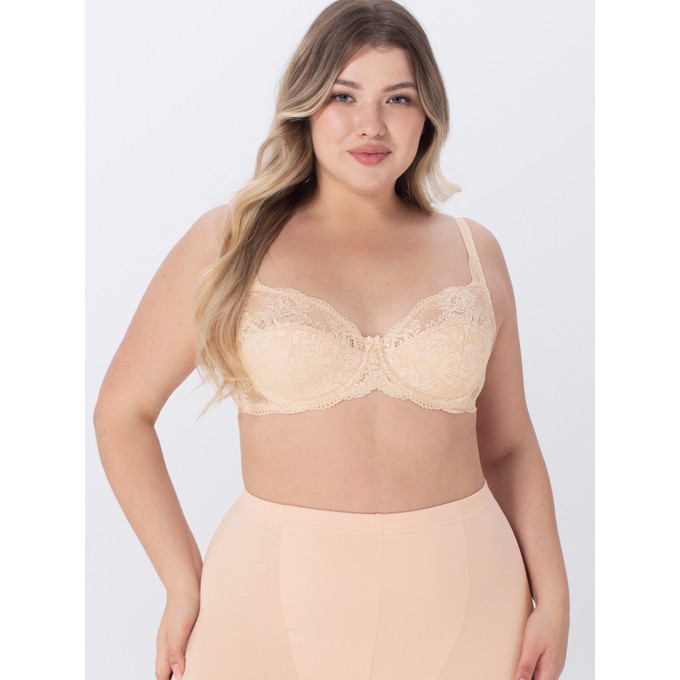 Определить размерБюстгальтер из широкого эластичного кружева, на каркасах. Нижние части чашки на дубляже с хлопком. Мягкая изнаночная сторона тесьмы и бретелей. Декор: бантик.