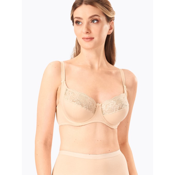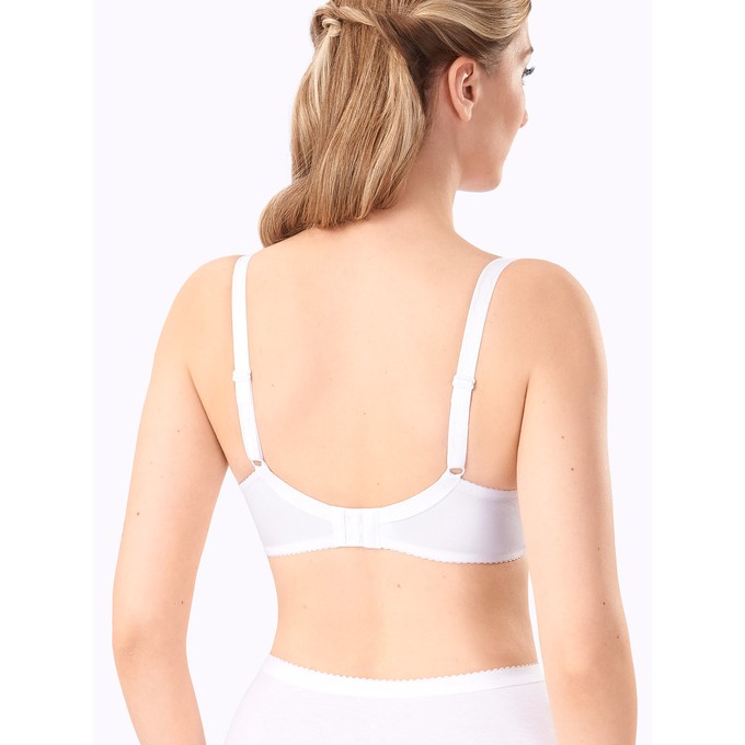 Определить размерБюстгальтер из натурального хлопка с лайкрой, на каркасах. Отделка по верхней части чашки из широкого эластичного кружева. Боковая поддерживающая деталь чашки из дубляжа. Дополнительные пластины по бокам обеспечивают идеальную форму и комфортное распределение нагрузки. Мягкая изнаночная сторона тесьмы и бретелей. Декор: бантик.