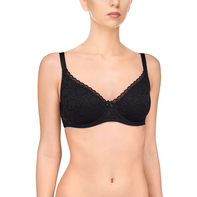 Определить размерБюстгальтер из эластичного кружевного полотна, на каркасах. Мягкая формованная чашка ламинирована натуральным хлопком с лайкрой. Отделка по верхнему срезу чашки из узкого эластичного кружева. Боковая поддерживающая деталь чашки из ламинированного хлопка с лайкрой. Дополнительные пластины по бокам обеспечивают идеальную форму и комфортное распределение нагрузки. Мягкая изнаночная сторона тесьмы и бретелей. Декор: бантик.