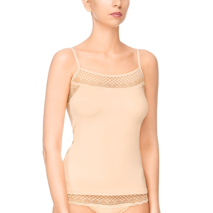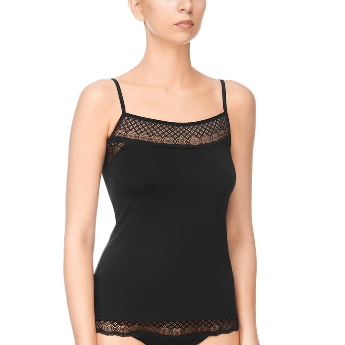 Определить размерМайка из натурального хлопка с лайкрой, прилегающего силуэта. Узкие регулируемые бретели из мягкой эластичной ленты. Отделка по верхним срезам переда и спинки из эластичного широкого кружева.