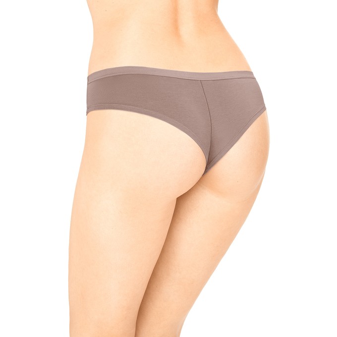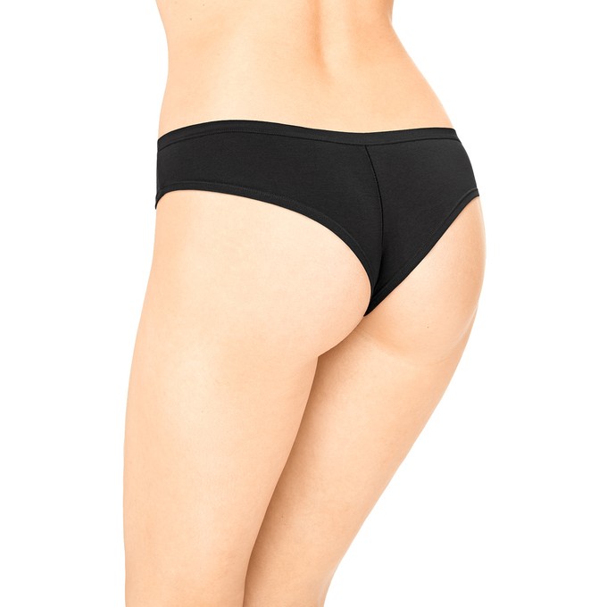 Определить размерТанга из натурального хлопка с лайкрой со средней линией талии. Мягкая эластичная тесьма по линии талии. Нижний срез по ножкам обработан деликатным плоским швом (без тесьмы).