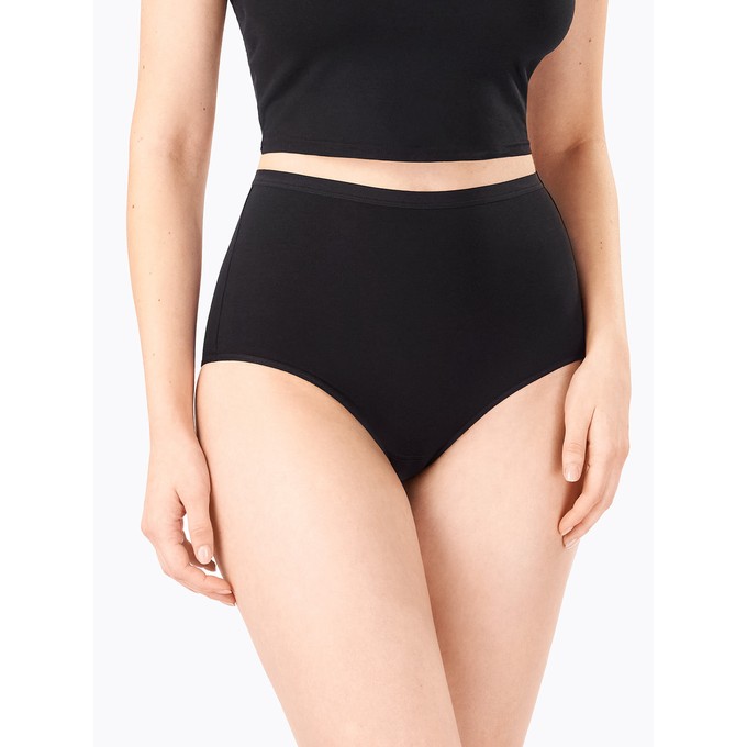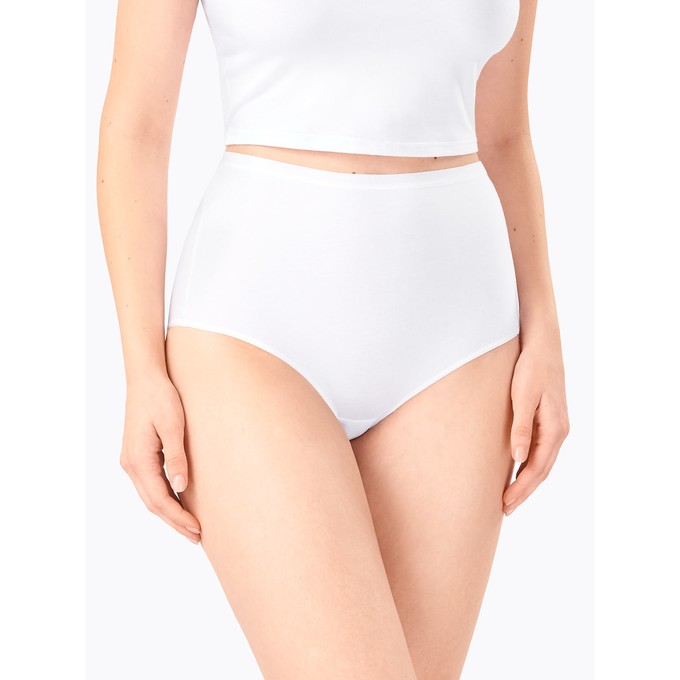 Трусы с высокой линией талии, из натурального хлопка с лайкрой. Мягкая эластичная тесьма по линии талии. Ластовица и узкие эластичные ленты по бедрам настрочены незаметным плоским швом.