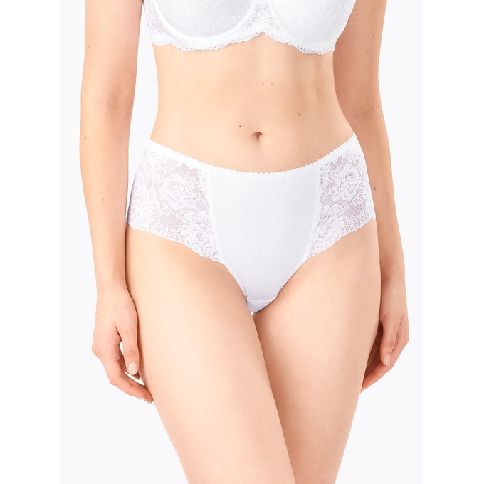 Определить размерТрусы из натурального хлопка с лайкрой со средней линией талии. Отделка по передней и задней частях из широкого эластичного кружева. Мягкая эластичная тесьма по талии. Ластовица и узкие эластичные ленты по бедрам настрочены незаметным плоским швом.