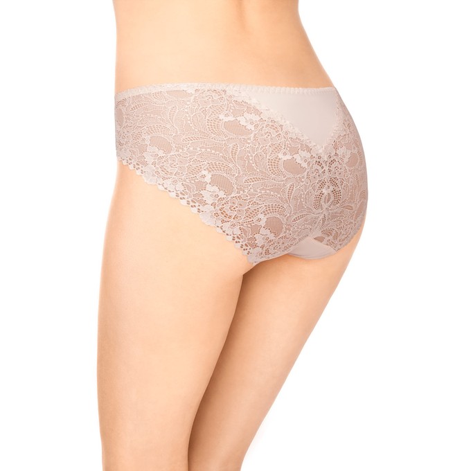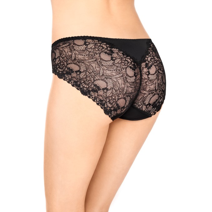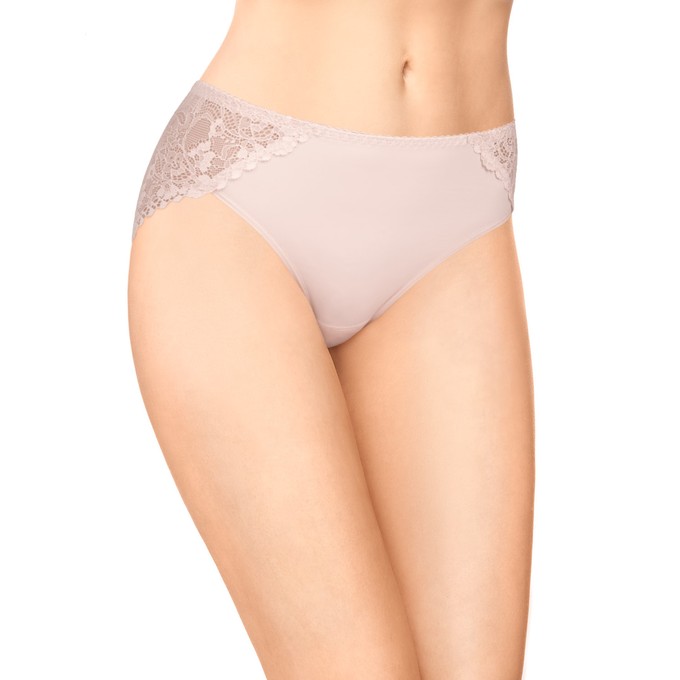 Трусы из гладкого эластичного полотна Tactel с высокой линией талии. Отделка из широкого эластичного кружева по задней части. Ластовица из натурального хлопка с лайкрой. Мягкая эластичная тесьма по талии. Ластовица и узкие эластичные ленты по бедрам настрочены незаметным плоским швом.