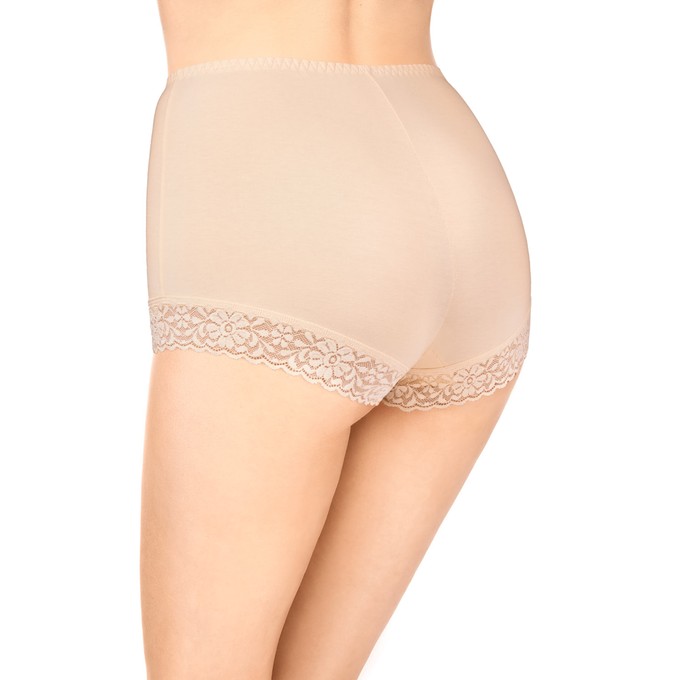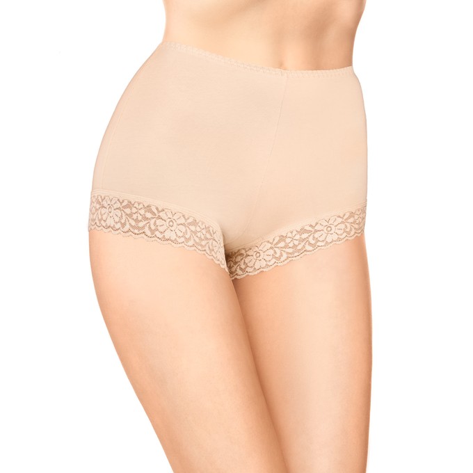 Шорты из натурального хлопка с лайкрой с высокой линией талии. Мягкая эластичная тесьма по талии. Широкое эластичное кружево по бедрам настрочено незаметным плоским швом