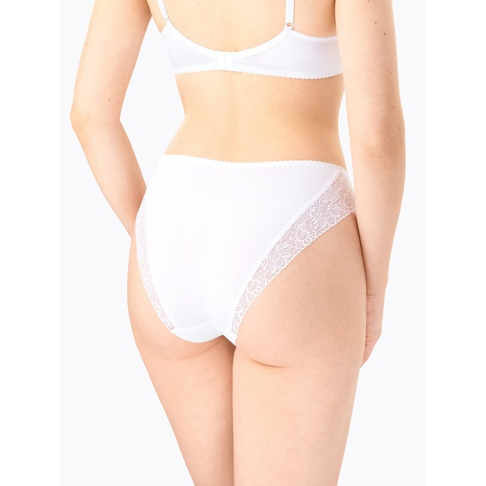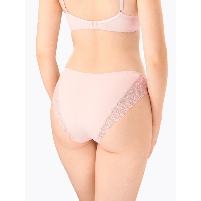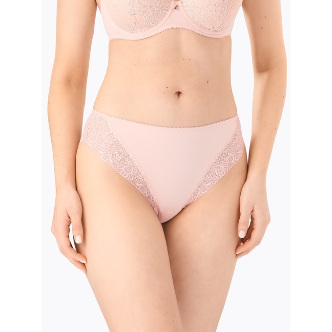 Определить размерСлипы со средней линией талии, из гладкого эластичного полотна и эластичного кружева. Подкладка ластовицы из хлопка, настрочена незаметным плоским швом. Мягкая эластичная лента по талии и узкая эластичная тесьма по нижним срезам, настрочены незаметным плоским швом.