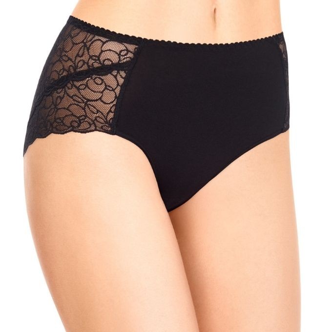Определить размерТрусы из натурального хлопка с лайкрой с высокой линией талии. Боковая часть выполнена из эластичного кружева. Узкая эластичная лента по линии бедер настрочена незаметным плоским швом. Мягкая эластичная тесьма по линии талии.